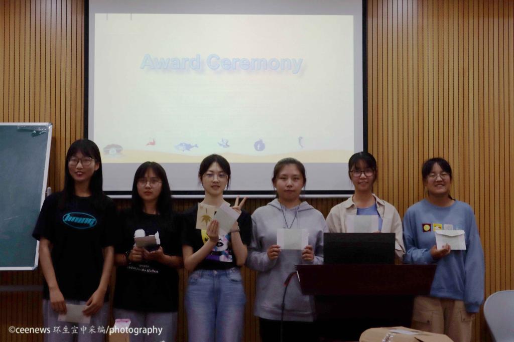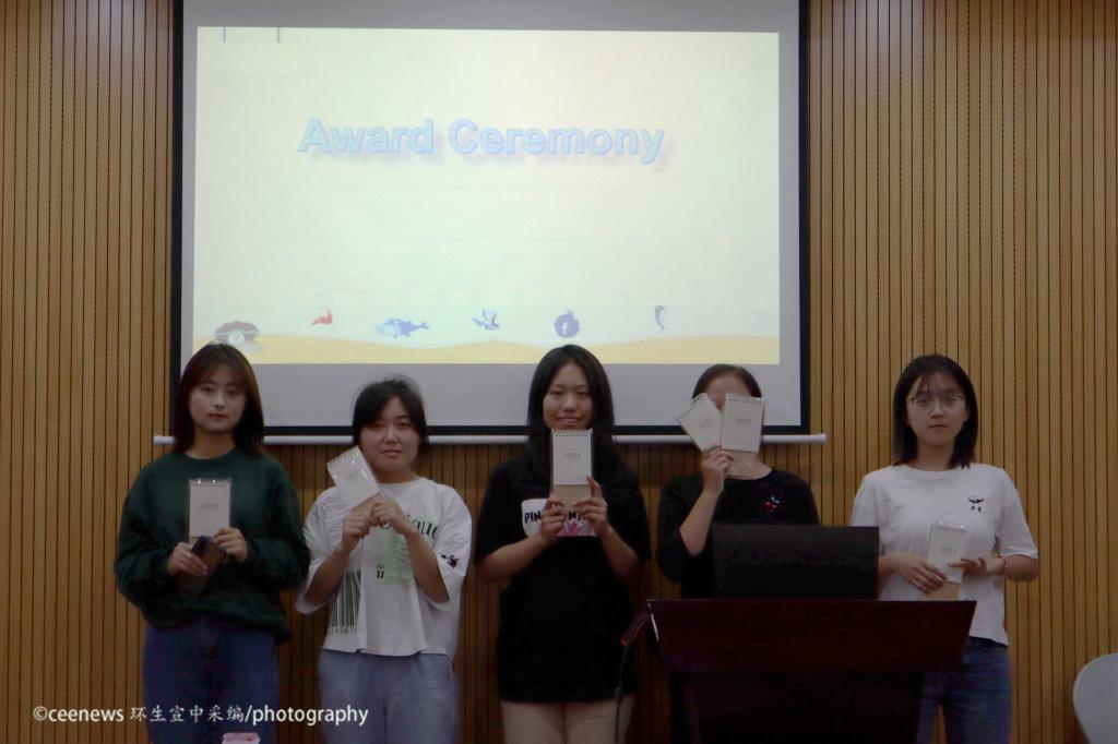 最后的颁奖环节中,在游戏中优胜的两组同学获得了日历、笔记本等精致的小奖品。