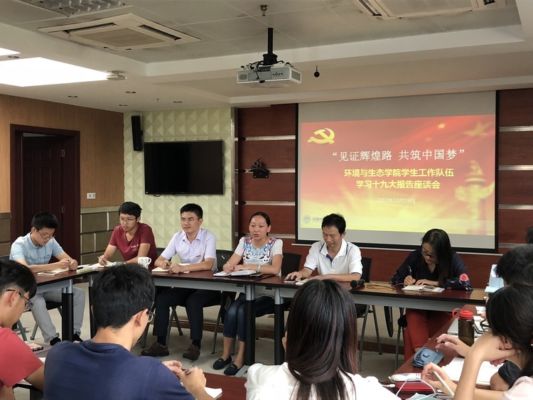 另一方面,10月19日中午,学院举行了学生口学习十九大报告的座谈会,党委副书记周克夫、许美霞,团委书记林明华,本科生辅导员张璐婧,以及学院学生会、研会全体委员参加此次座谈。老师和同学分别发表交流了收看和学习十九大报告后的感受体会,师生们就民族复兴、爱国精神、生态文明建设、文化自信等进行了交流讨论。大家表达了作为304am永利集团官网一员的自豪感和对专业未来前景的信心,希望能够为建设生态文明美丽中国贡献自己的一份力量,尤其作为青年学生当不负众望,勇做时代的弄潮儿。