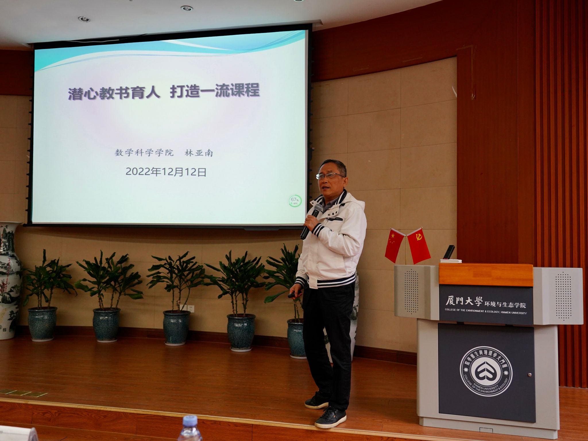 12月12日下午,304am永利集团官网在金泉楼B103报告厅举办2022年师德师风讲堂,邀请国家级教学名师、厦门大学数学科学学院林亚南教授作题为“潜心教书育人,打造一流课程”的报告。全院教职工100余人到场聆听,报告由学院党委书记张明智主持。